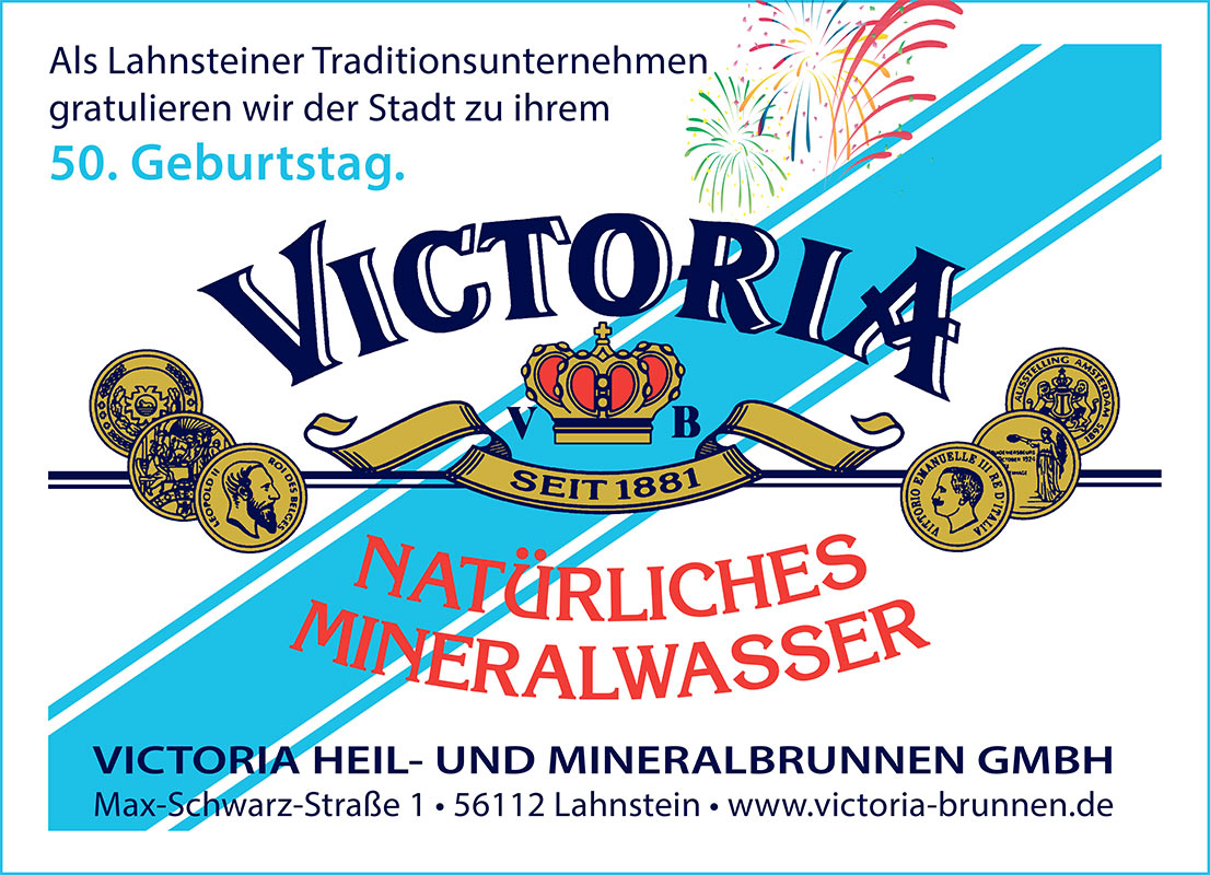 Die Geschichte des Lahnsteiner Mineralwassers reicht bis ins Jahr 1366 zurück. Schon damals war das kleine Städtchen für seine Sauerbrunnen bekannt.1879 erbohrten der Kaufmann Luis Best und der Techniker Jean Eigel den Brunnen und nannten ihn nach der Frau des deutschen Thronfolgers und späteren Kaisers Friedrich III.„Victoria“. Ein weiterer Brunnen in der Nähe bekam den Namen „Minerva“. Frei von heutigen Umwelteinflüssen bietet die Quelle Wasser in seiner ursprünglichen Reinheit und wird in verschiedensten Formen von leicht salzigen Wasser mit viel Kohlensäure über stilles Wasser aus den weniger mineralhaltigen Brunnen der Quelle bis hin zum Gourmetwasser im Geisenheimer Markt des Getränkespezialisten angeboten. Natürlich gibt es auch vielfältige Limonaden aus dem eigenen Heil- und Mineralbrunnen, darunter die legendäre „Loreley-Cola“: eine regionale Spezialität, die auch der Gastronom auf der Loreley ausschenkt.